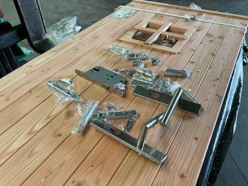 Deur in kozijn grijs 215x110 cm. Met hang en sluit werk.