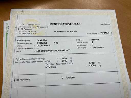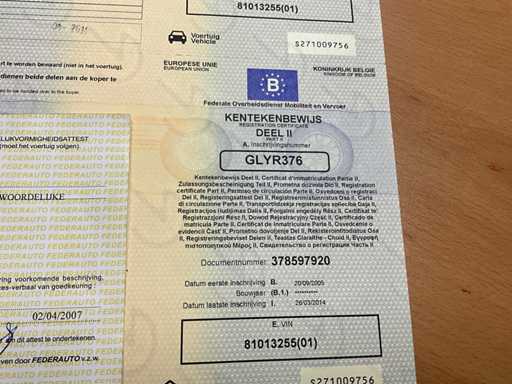 •inschrijvingsbewijs: deel 1 en deel 2 aanwezig