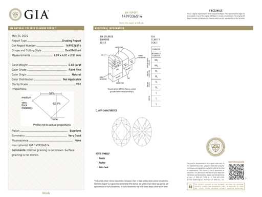 Diamant: Natuurlijk; Aantal: 1 stuk; Slijpvorm: Ovaal geslepen; Gewicht (carat): 0.40 carat; Kleur: Optisch roze gekleurd, zie GIA certificaar voor kleur gradering; Zuiverheid: VS1; Certificaat: GIA; Certificaat nummer: 1499336514; Extra informatie: Fancy colour diamanten zijn diamanten met een bijzondere kleur en zijn zeer zeldzaam. Hierdoor zijn ze zeer gewild en daardoor in hoge mate geschikt voor beleggingsdoeleinde. Zie GIA-certificaat voor kleur gradering.; Conditie: Nieuw; Verpakking: Edelsteendoos; Toelichting: De kwaliteit is overgenomen van het rapport behorend bij item. De waardebepaling is een beoordeling van een gecertificeerde diamantair, gebaseerd op consumentenprijzen.; Consumentenprijs: € 30.000,-