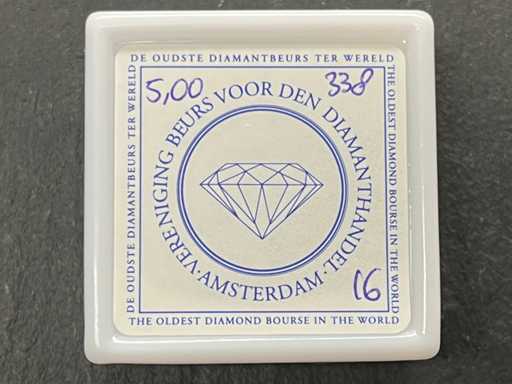 Diamant: Natuurlijk; Aantal: 16 stuks; Slijpvorm: Ruw; Gewicht (carat): 5.00 carat; Kleur: Mixed; Conditie: Nieuw; Verpakking: Edelsteendoos; Toelichting: De kwaliteit is overgenomen van het rapport behorend bij item.