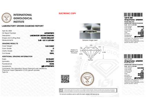 Alle diamanten hebben een gegraveerde laser-inscriptie. De kwaliteit is overgenomen uit het bijhorende certificaat.