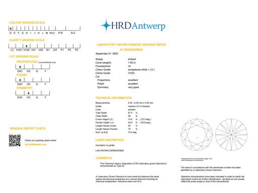 Alle diamanten hebben een gegraveerde laser-inscriptie. De kwaliteit is overgenomen uit het bijhorende certificaat.