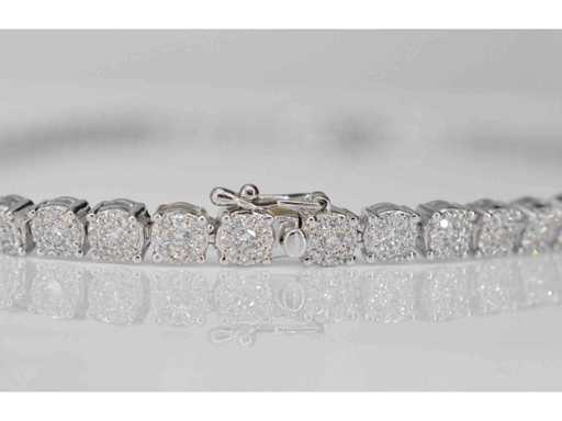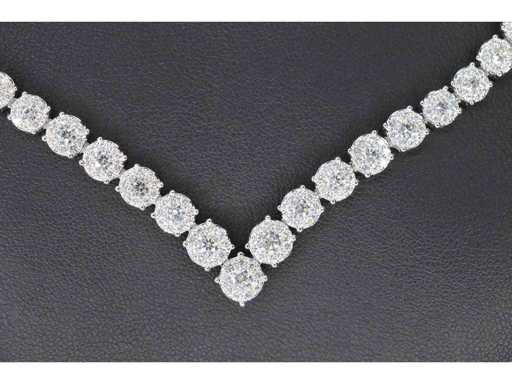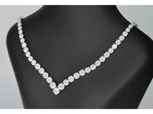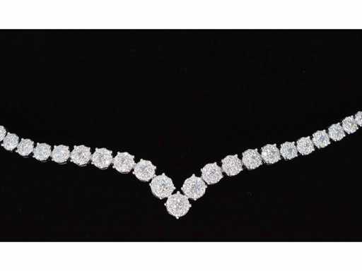 Diamant: Natuurlijk; Aantal: 850 stuks; Slijpvorm: Briljant geslepen; Gewicht (carat): 8.00 carat; Kleur: F-G; Zuiverheid: VS; Slijpkwaliteit: Zeer mooi; Juweel: Collier; Gewicht: 30 gram; Afmetingen/lengte: 41,5 cm; Materiaal: 18K goud (750); Conditie: Nieuw; Verpakking: Luxe sieradendoos; Toelichting: De kwaliteit is overgenomen van het rapport behorend bij item. De waardebepaling is een beoordeling van een gecertificeerde diamantair, gebaseerd op consumentenprijzen.; Consumentenprijs: € 55.125,-