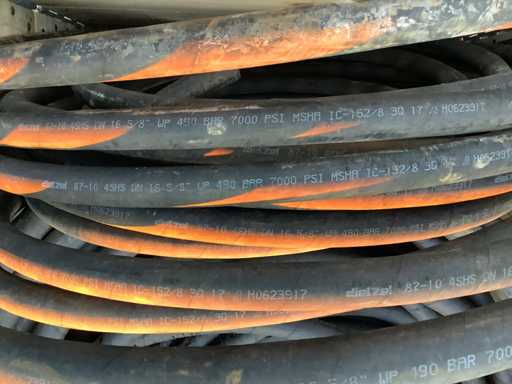 Kist met hydraulische slangen