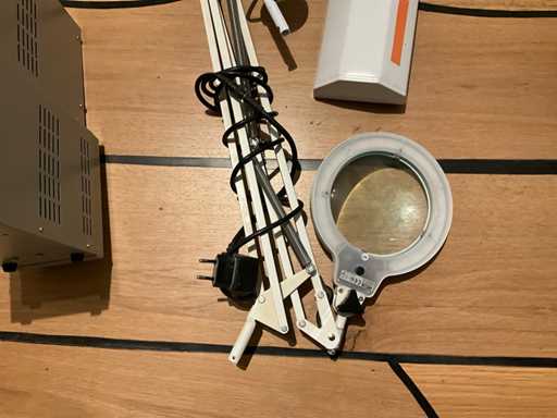 Waaronder 2 diverse lampen waaronder 1x met vergrootglas, 2x power supply TENMA en diversen