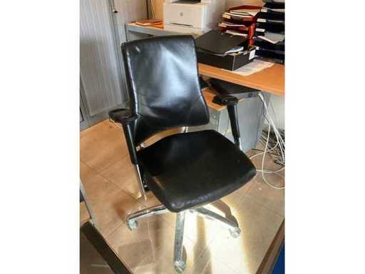Bestaande uit L vorming bureau voorzien van metalen onderstel en houten bovenblad met totale afmetingen240x180x75cm:dito bureautafel met afmeting:100x80x75cm, ladeblok, 2x skailederen fauteuil, directiestoel en bijzetstoel, metalen kast voorzien van 2 deuren inhoudend diverse diverse bureauaccesoires, monitor Philips, toetsenbord Kensington, diverse klaseerbakjes, afgifte volgens aanwijzing