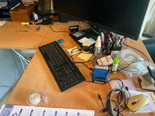 Uitgezonderd 3x dossierkast en desktop