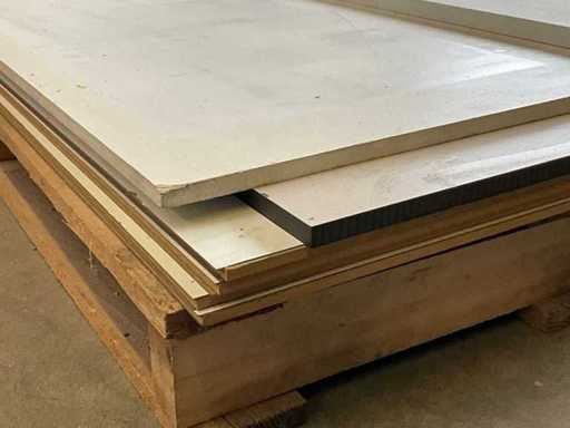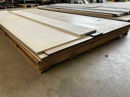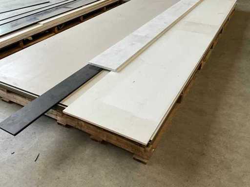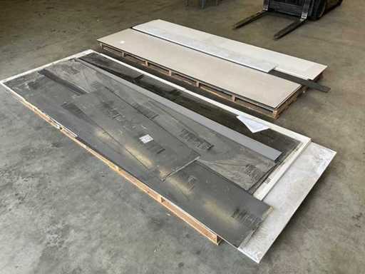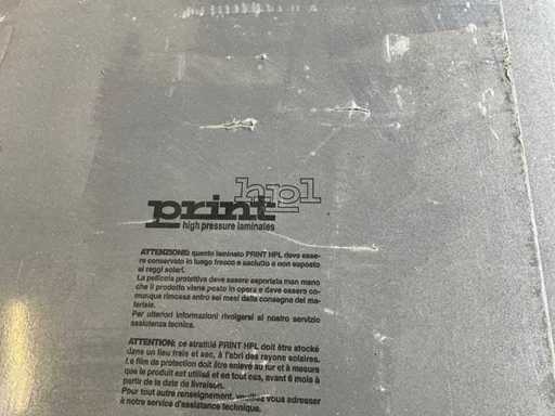 Waaronder corianblad met afmetingen 360 x 135cm, hpl laminaat 305 x 42cm, abet laminaat 306 x 130cm