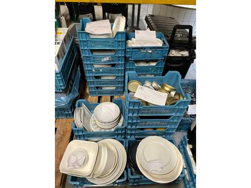 Waaronder ca. 53 diverse ronde borden, ca. 370 amuse schaaltjes, ca. 12 diverse borden en kommen.