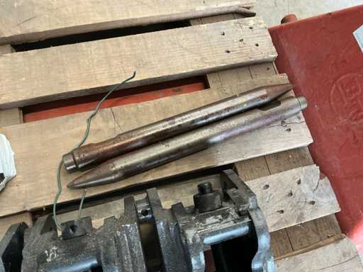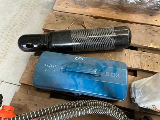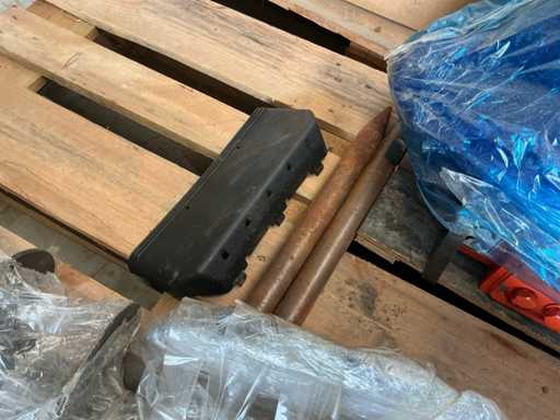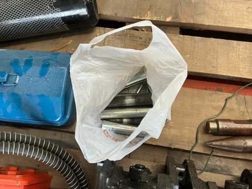Waaronder 2x schieter voor minigraafmachine type 350, 3x snelwisselaar, diverse bevestigingspinnen, grondboor voor minigraafmachine 100cm en toolset
