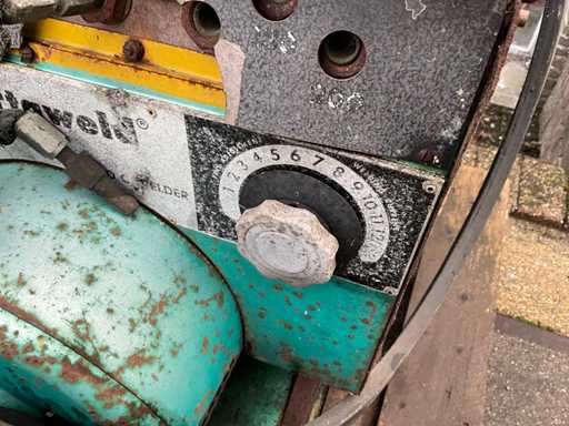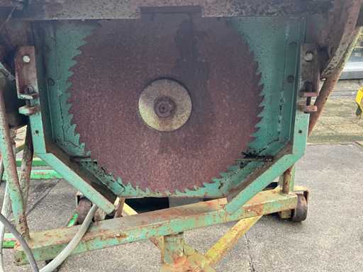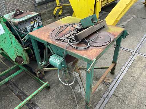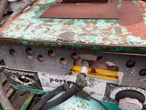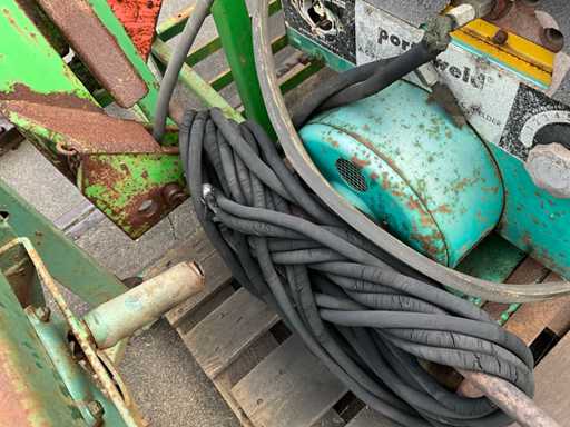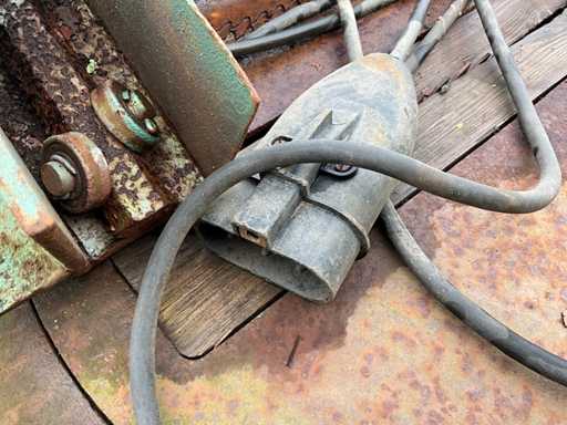 1997 Holaras Exakta 3-punt hef naar accord weegbok, hydraulische pers cilinder, 400V zaagtafel, Onan powerweld lasgenerator met handstart