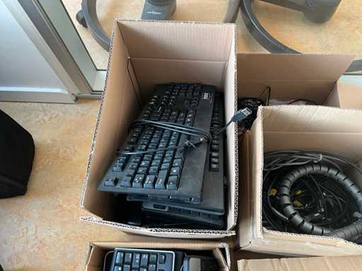 Betreft inhoud van 8x doos. Inhoud bestaat onder andere uit: toetsenborden, muizen, stekkerdozen, bekabeling, Lenovo thinkpad docks
