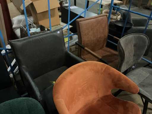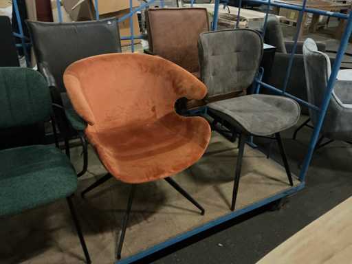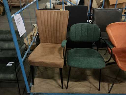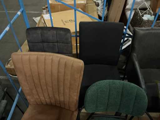 Alles in kar, 8 x diverse eetkamerstoel, stoffen kleuren etc.