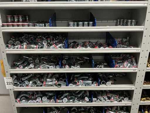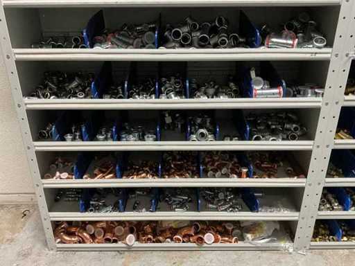 Betreft alles in en op 1x grijpvoorraadkast; onder andere: knieën, t-stukken en sokken persfittingen, vulset, etc; c staal en roodkoper
