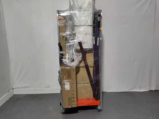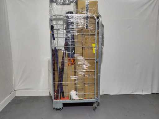 Volle rolcontainer met voornamelijk overstock, overbevindingen, retouren. Rolcontainer niet inbegrepen.