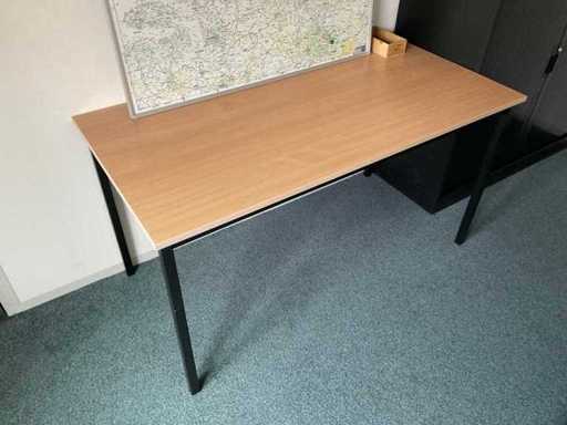 Bestaande uit: (1x) bureautafel 1800x800x750mm, (1x) kantoortafel 1400x700x750mm, (1x) kaart van Nederland 1000x1300mm, (1x) roldeurkast 1220x460x1080mm, (1x) zitgroep met ronde tafel Ø 600mm, en 4 stoelen.