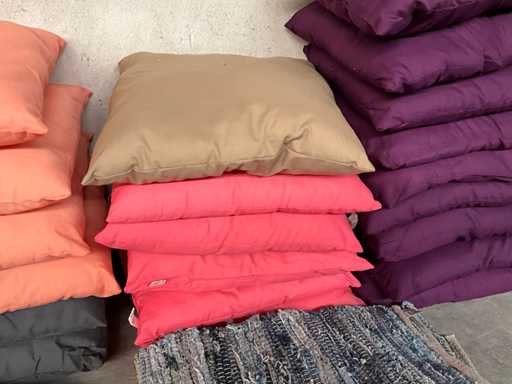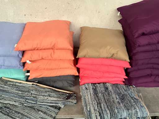 Kavel bestaande uit; 27x sier kussen, 3x denim kleed 90 x 60 cm.