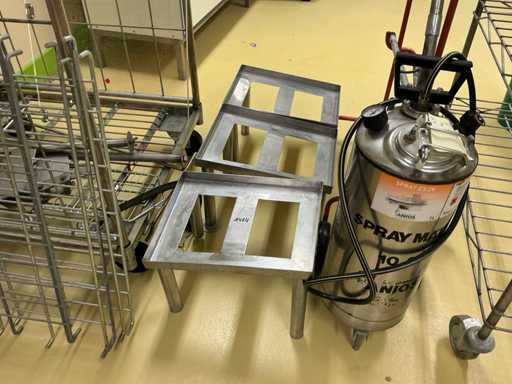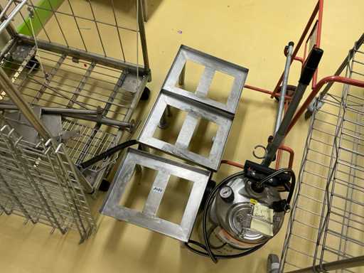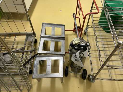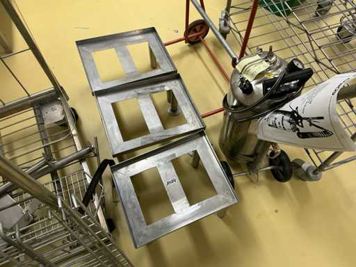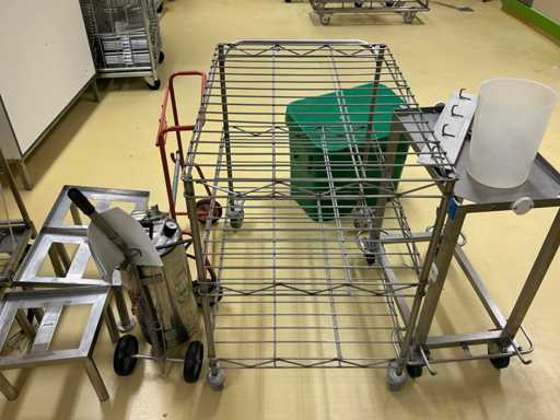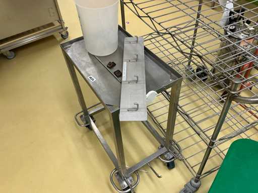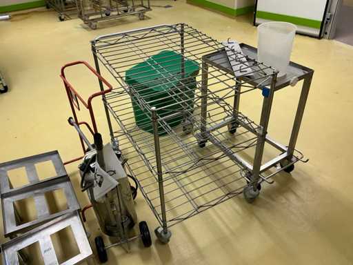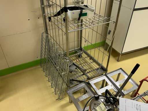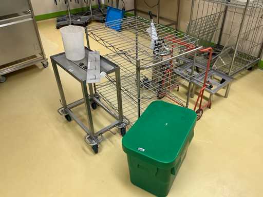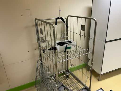 Inclusief een bak, 3 karren, 1 dispenser, 1 desinfectiemiddelfleser en 3 standaards voor kooien en andere accessoires.