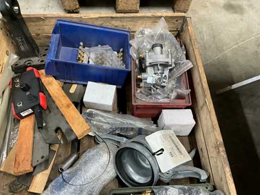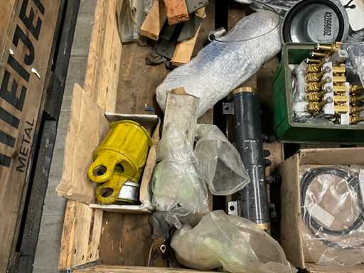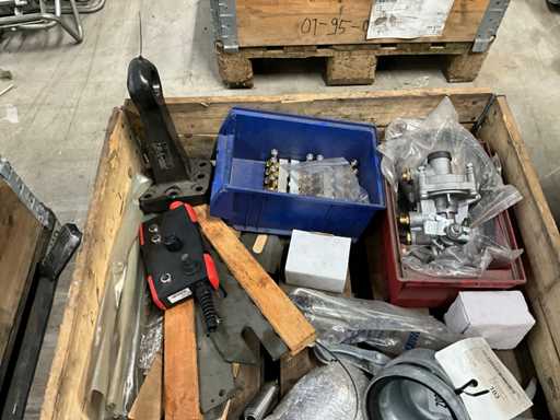 onder andere 4” eindkoppeling, luchtrem verdeelblok, aftakas delen, trekoog, alles in palletkist, Let op! zonder palletkist