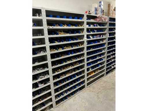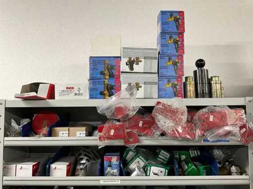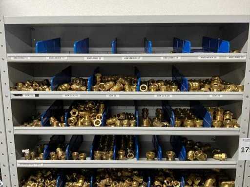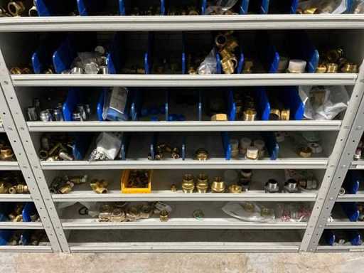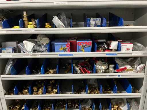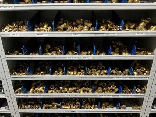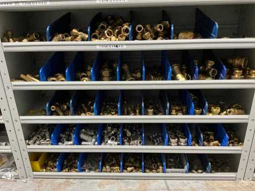 Betreft alles in en op 2x grijpvoorraadkast; onder andere: knieën, t-stukken, sokken knelfittingen, boiler inlaatcombinaties, etc; diverse merken, waaronder: Bonfix, VSH en Duco