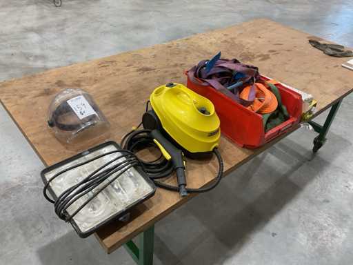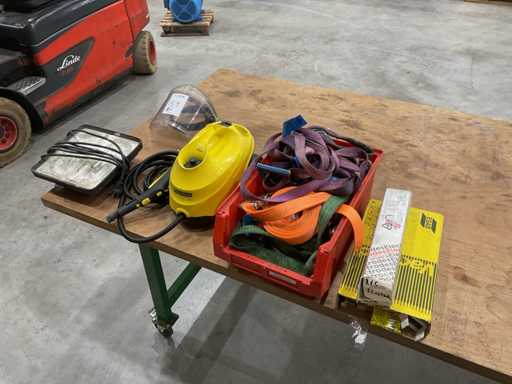 1x lamp; 6x laselektroden; 1 diverse trekbanden hijsbanden; 1x slijpmasker; karcher SC3.