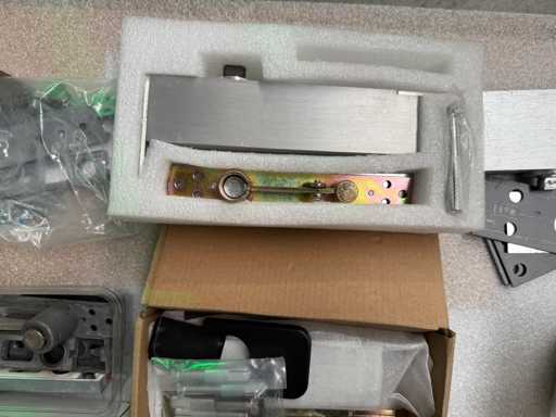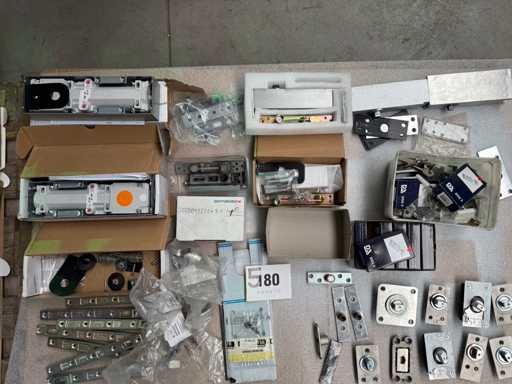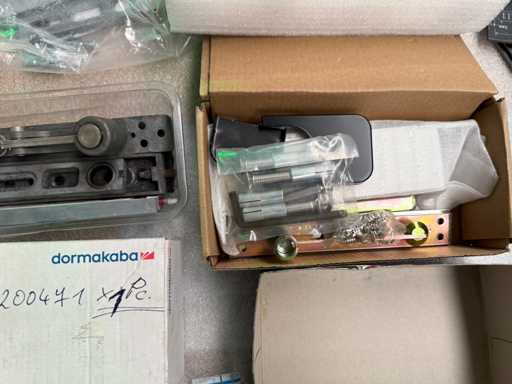 Bestaande uit 2x Dorma vloer pivot, Dorma onderspeunen, Dorma verhoog bussen, divers Dorma toebehoren en compleet met diverse andere pivots. Allemaal ongebruikt.