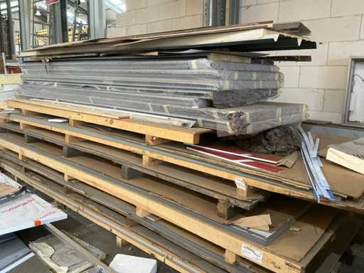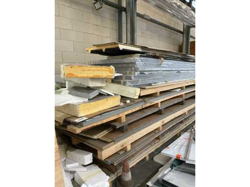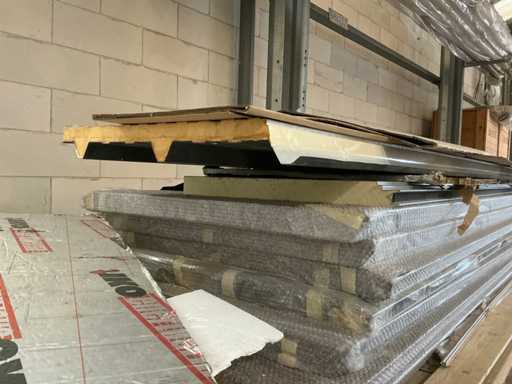Voorzien van aluminium toplaag waaronder met afmeting 406 x 150 cm tot 490 x 150 cm, in diverse diktes waaronder 4 mm, compleet met 7 diverse sandwichpanelen waaronder 314 tot 342 cm, allen 100cm breed