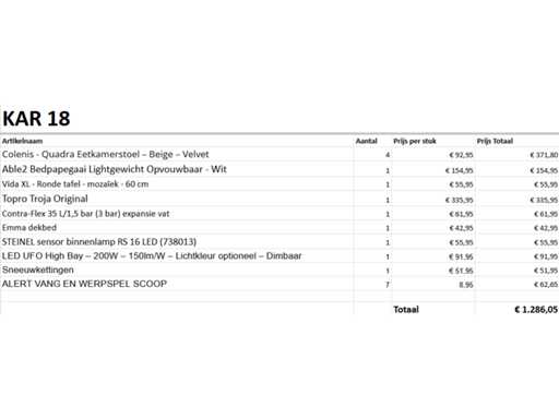 Diverse - Retourgoederen - Overbevindingen - Kar 18