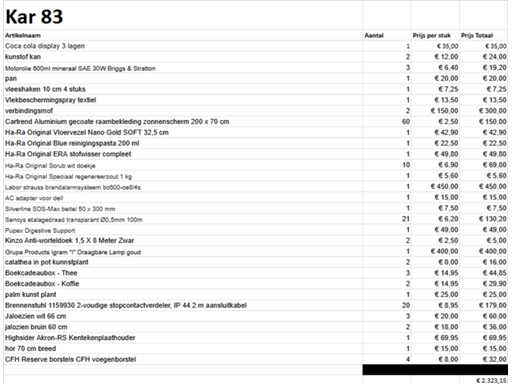 Partij Overbevindingen / Lost and Found. Kar niet inbegrepen. Voor inhoud van de kar. Zie documenten: