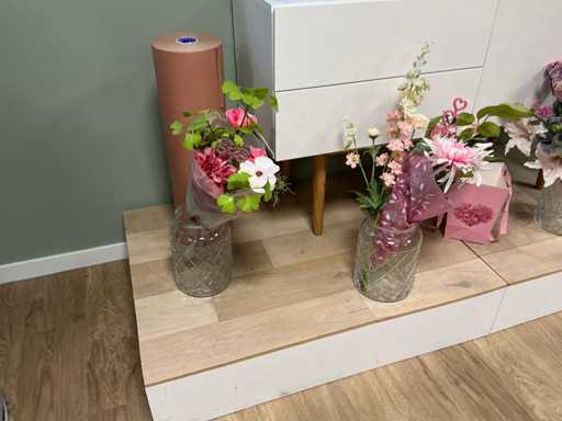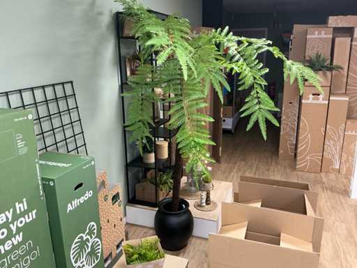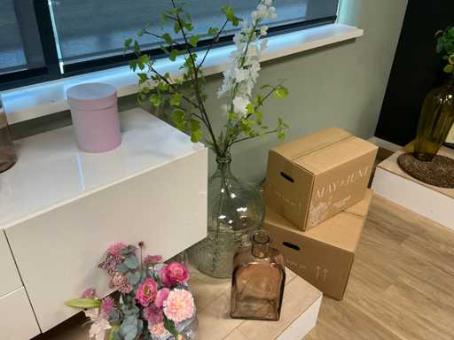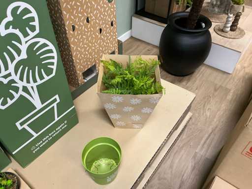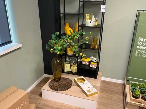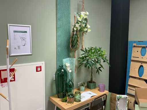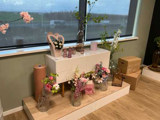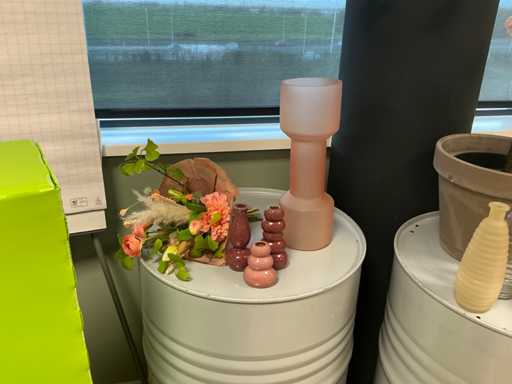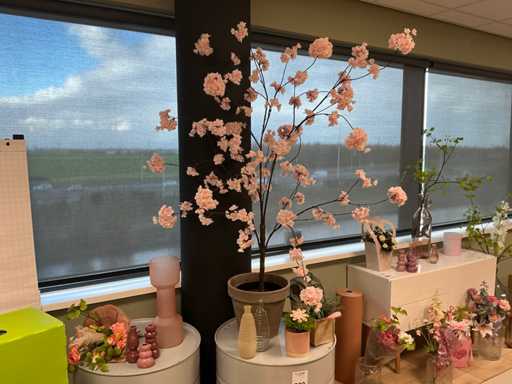2 olievaten, diverse vazen, potjes, decoratie planten/boom, etc. Meubels niet inbegrepen