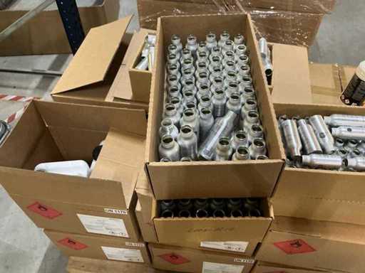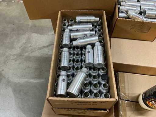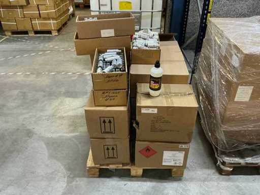Alles op 1 pallet, diverse dozen met flessen bio-ethanol, lege aluminium flesjes tbv nagel toebehoren (bedrukt), onbedrukte flesjes kunststof