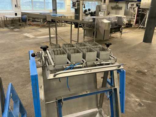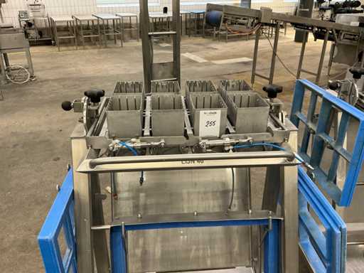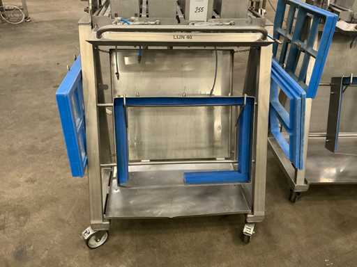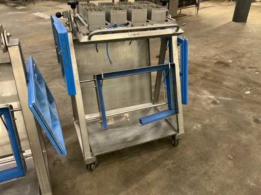 8 vaks, op frame in RVS kar met diverse toebehroen