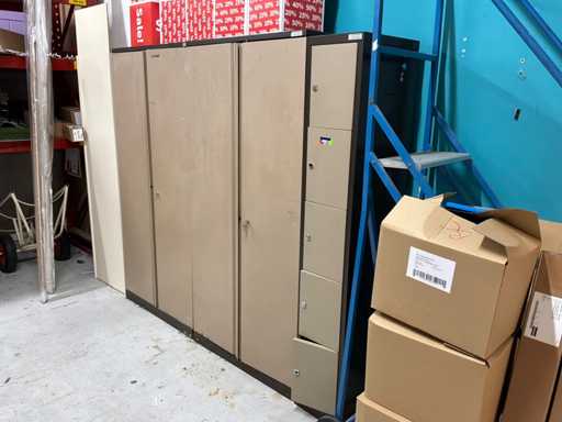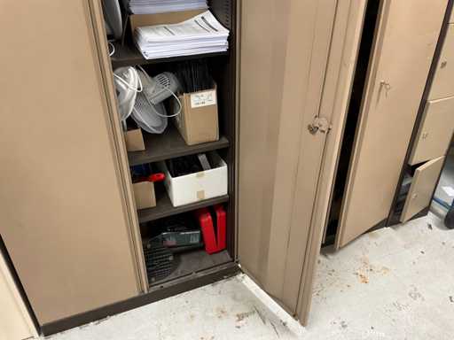Kavel is exclusief inhoud. 2 Dossierkasten en 1 Lockerkast