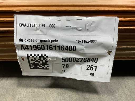 Douglas dakbeschot geschaafd mes en groef - 400x11,6x1,6 cm (76x)