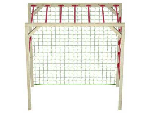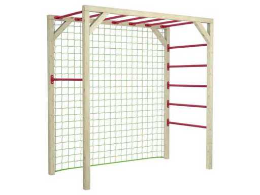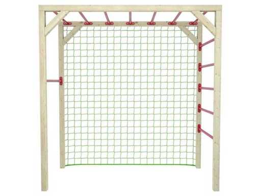 Met het klimrek Bobbie kun je veel buitenplezier beleven. Klimmen en klauteren of een balletje trappen, het kan allemaal door het meegeleverde doelnet en rekstokken met poedercoating. Het klimrek Bobbie is 217 cm hoog, 210 cm breed en 103 cm diep en geschikt voor kinderen tussen de 3 en 14 jaar oud. Het maximale gewicht van klimrek Bobbie is 200 kg. Het klimrek is gemaakt van onbehandeld vuren. Vuren is de meest gebruikte naaldhoutsoort in Europa omdat het zich goed laat verwerken en een middelmatige tekening in het hout heeft. Gemiddeld genomen kent vuren kleine tot middelgrote kwasten. Wij leveren het klimrek inclusief de achtdelige grondankerset. De set bestaat uit acht grondankers inclusief schroeven en sluitringen, die aan weerszijden van de palen bevestigd worden. Wij leveren het artikel als bouwpakket, inclusief bevestigingsmateriaal. Met behulp van de stapsgewijze montagehandleiding bouw je hem gemakkelijk op.