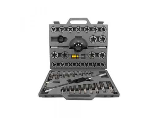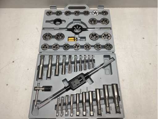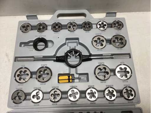 Zeer complete snij en tapset bestaande uit verschillende tap en snij ijzers in maten van M6 tot en met M24. Met wringijzers, schroevendraaier, compleet in koffer. Metrisch.