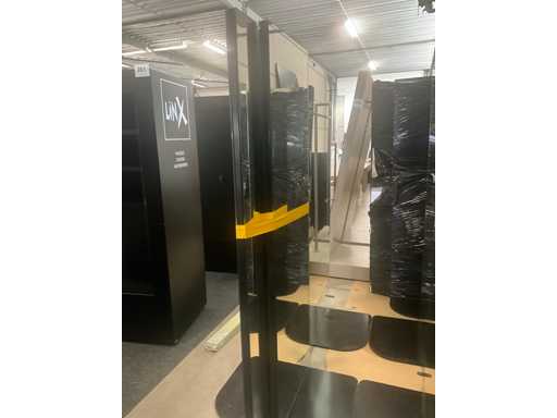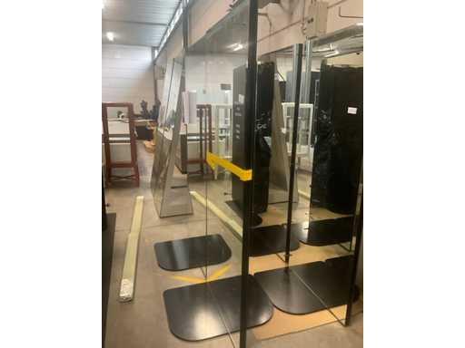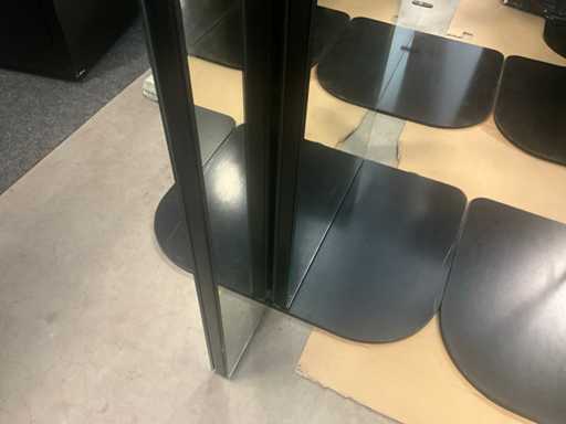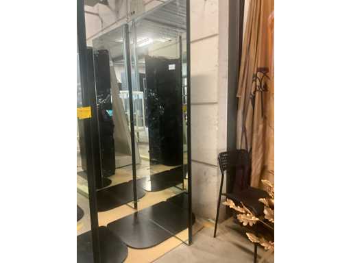 Foto indicatief. Afmetingen voet : 80 x 60 cm. Langs beide zijden voorzien van spiegel en bestaande uit 2 spiegelpanelen, 1x 80 en 1x 60 cm breed, waarvan smal paneel roteerbaar is.