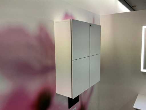 Voorzien van 2 deuren en 2 glazen planchetten. Let op zelfde design als kavel 57