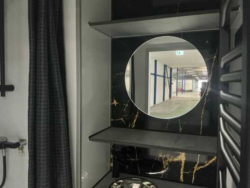 Douchebak 70x70cm, douche mengkraan, wastafel 70cm met spiegel. Sleutels aanwezig