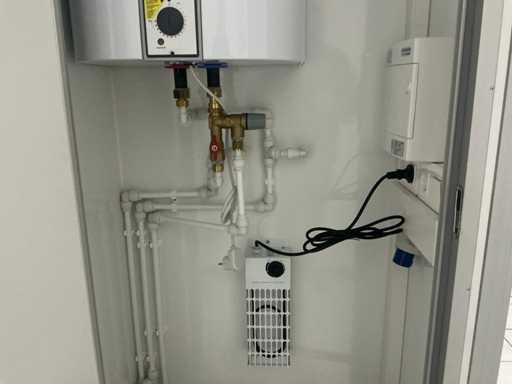 Voorzien van Metrotherm 907 26Lboiler, elektrische verwarming, wastafel,