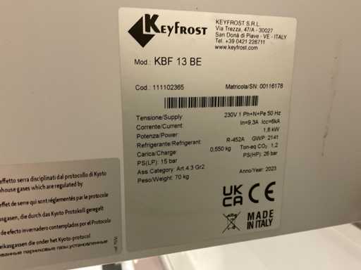 Ongebruikt, met kenteken; merk Keyfrost 220 volt vriest na min 18 graden , type koeler kbf 13. 230 V aansluiting, binnenhoogte 127 cm.
