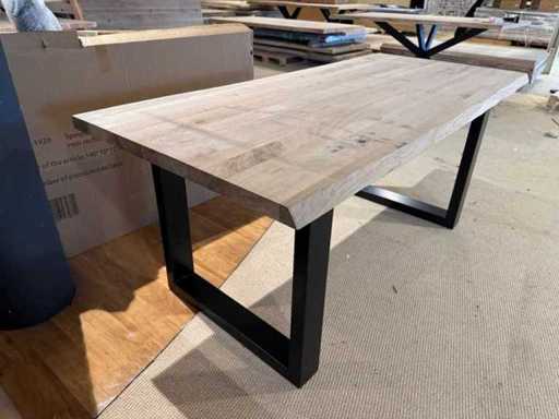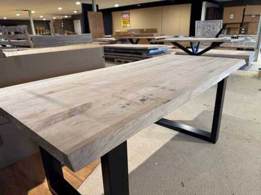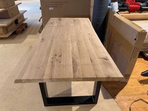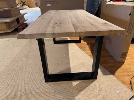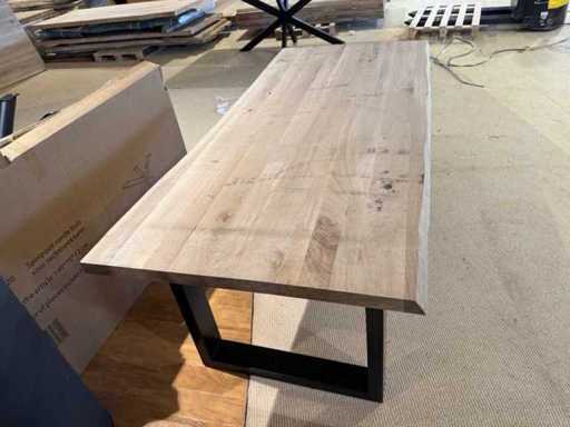 Eettafel - massief eikenhout - Zwart metalen U-poot - boomstamtafel