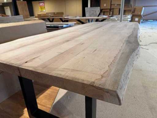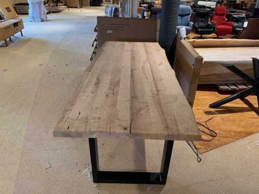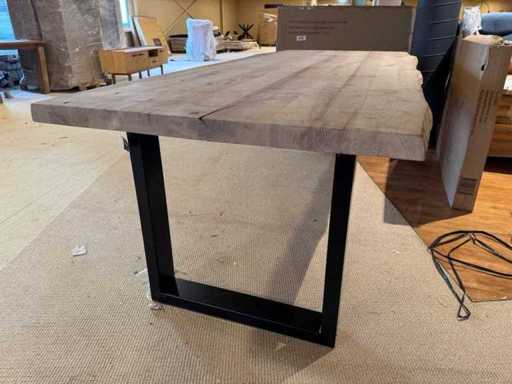 Eettafel - massief eikenhout - Zwart metalen U-poot - boomstamtafel