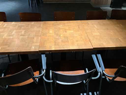 Voorzien van 5 tafels afmeting 70x60x76cm en 10 stuks stoel met houten zit en rug gedeelte