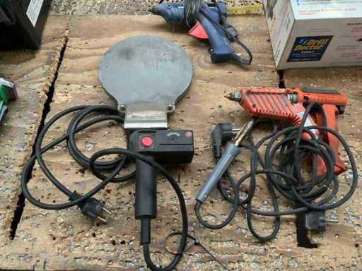 waaronder: 1 Rix kunststof spiegellasmachine, type: HG 200T, 2 patroon lijmpistolen, 1 borenslijper, 1 Milwaukee M12-18C acculader