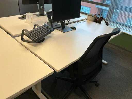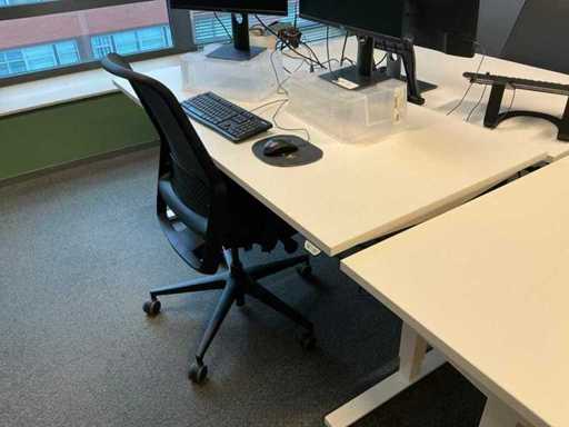 In hoogte verstelbaar tot 120cm, inclusief Windhahn bureaustoelen en 1x opbergkast 80x42x74cm