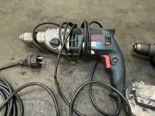 2x Bosch boormachine; 1x Metabo haakse slijpmachine; 1x Makita schaafmachine