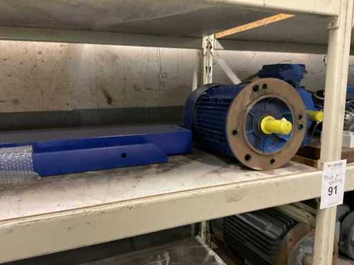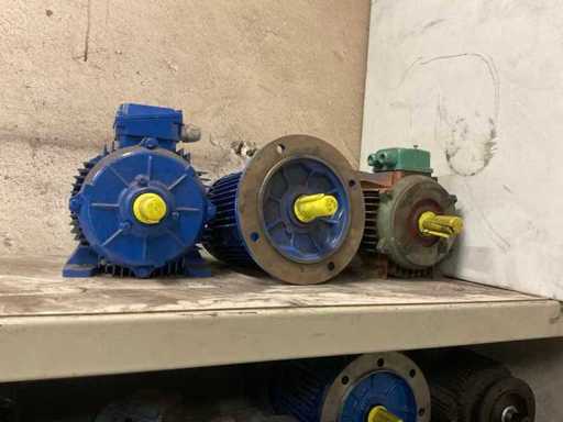 Diverse elektromotoren in stelling, 230/400V deels gereviseerd, deels gebruikt, in en inclusief stelling.