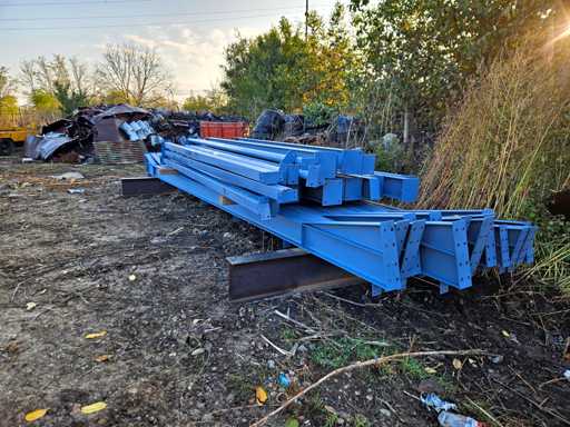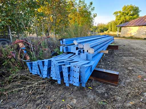 Aanvullende informatie Staalconstructie; Richelhoogte 7000 mm; Bouwjaar 2026; Aanvullende informatie Dakhelling: 20 graden; Geschilderd RAI 5023; De constructie bestaat uit 2 balken (vakwerkten) aan de uiteinden die zijn gemaakt van een IPE 160-profiel, 5 tussenliggende balken (vakwerk) van het IPE 220-profiel, 4 kolommen aan de uiteinden van het IPE 160-profiel, 10 tussenliggende kolommen van het IPE 220-profiel. 4 deurkolommen van vierkante pijp 100x100x4, 6 drukpalen van leiding 76x4, windstrip voor balken en kolommen van gegalvaniseerd staal met 16mm spanner, de hele constructie is op schroeven (verwijderbaar) Staat: ongebruikt; De hele constructie bevat een certificaat van conformiteit voor materialen, een bouwschets en een funderingsplan. Er staat een vorkheftruck van 8 ton bij het magazijn, gratis laden.