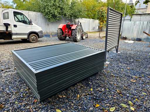 Hekpanelen gemaakt van 0,8 mm golfplaten RAL 7023 grijs met afmetingen, breedte 2000, hoogte 1600, 14 panelen 2000x1600. Gratis verzending. Inkopen